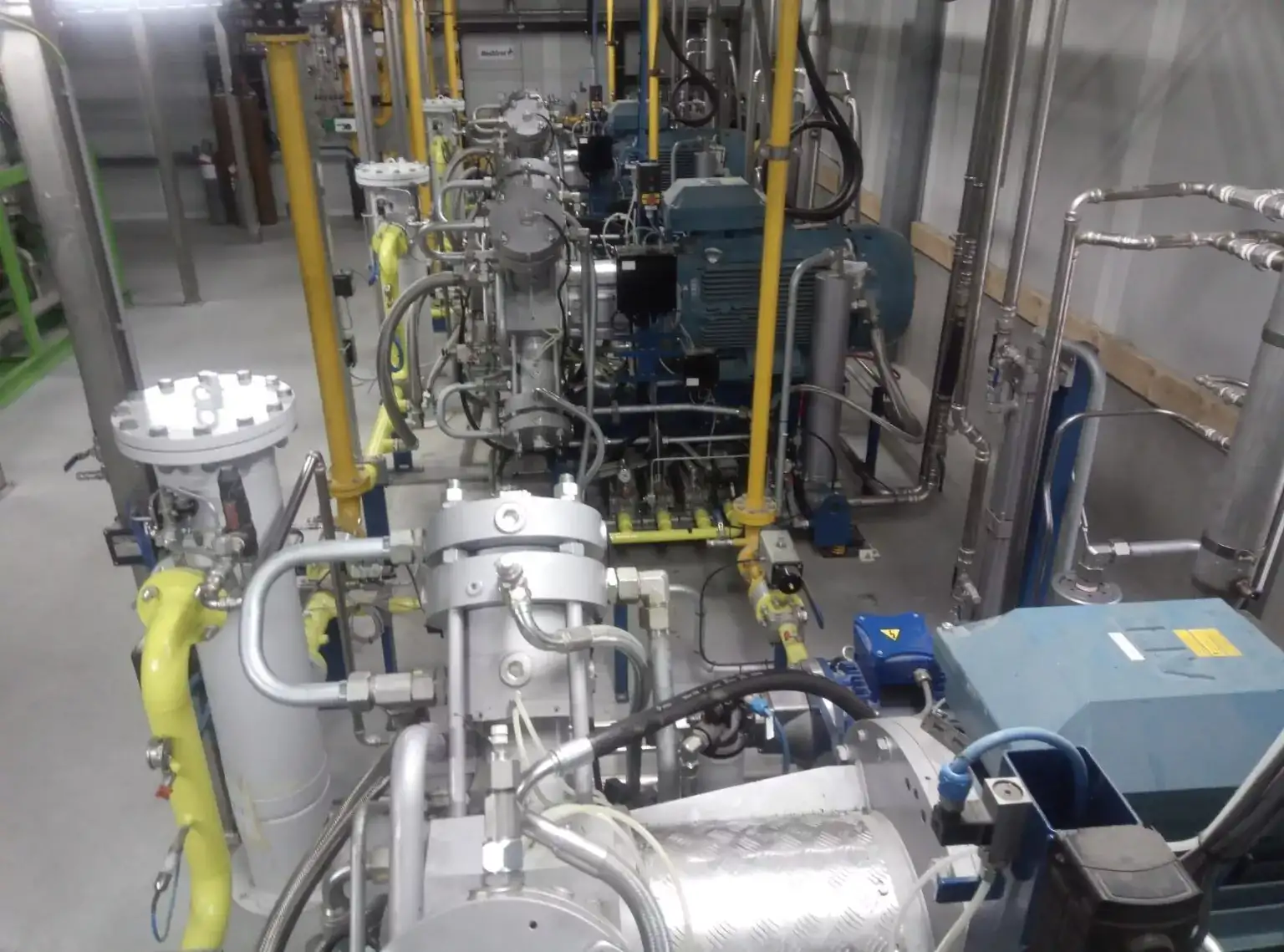 Bir modul maksimum məhsuldarlığı 1000 Sm³/saat təşkil edən 110 kVt gücündə ST seriyalı kompressordan ibarətdir. Kompressor biometanı 8 barG təzyiqdən 40 barG şəbəkə təzyiqinədək sıxır. VFD və resirkulyasiya xəttinin kombinasiyası məhsuldarlığın 0%-100% tənzimlənməsini təmin edir.