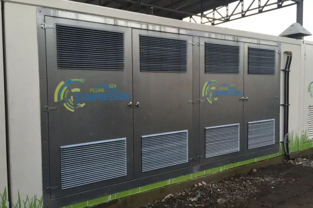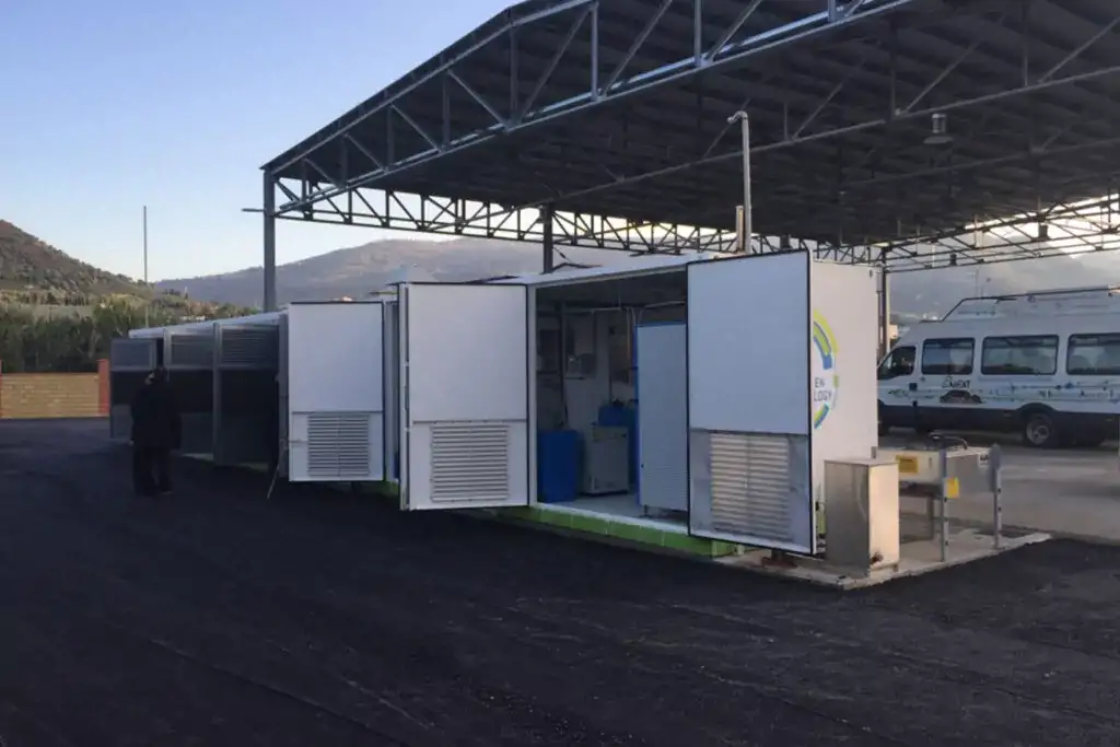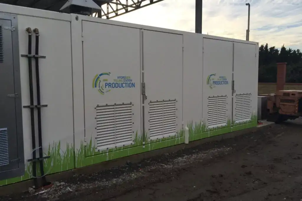 Bu, 12 metrlik dəmir-beton modulun daxilində yerləşdirilmiş, bütün sistemin (hidrogenin istehsalından tutmuş saxlanmasına və elektrik təchizatı və idarəetmə panelinə qədər) bir araya gətirildiyi kompakt həldir.