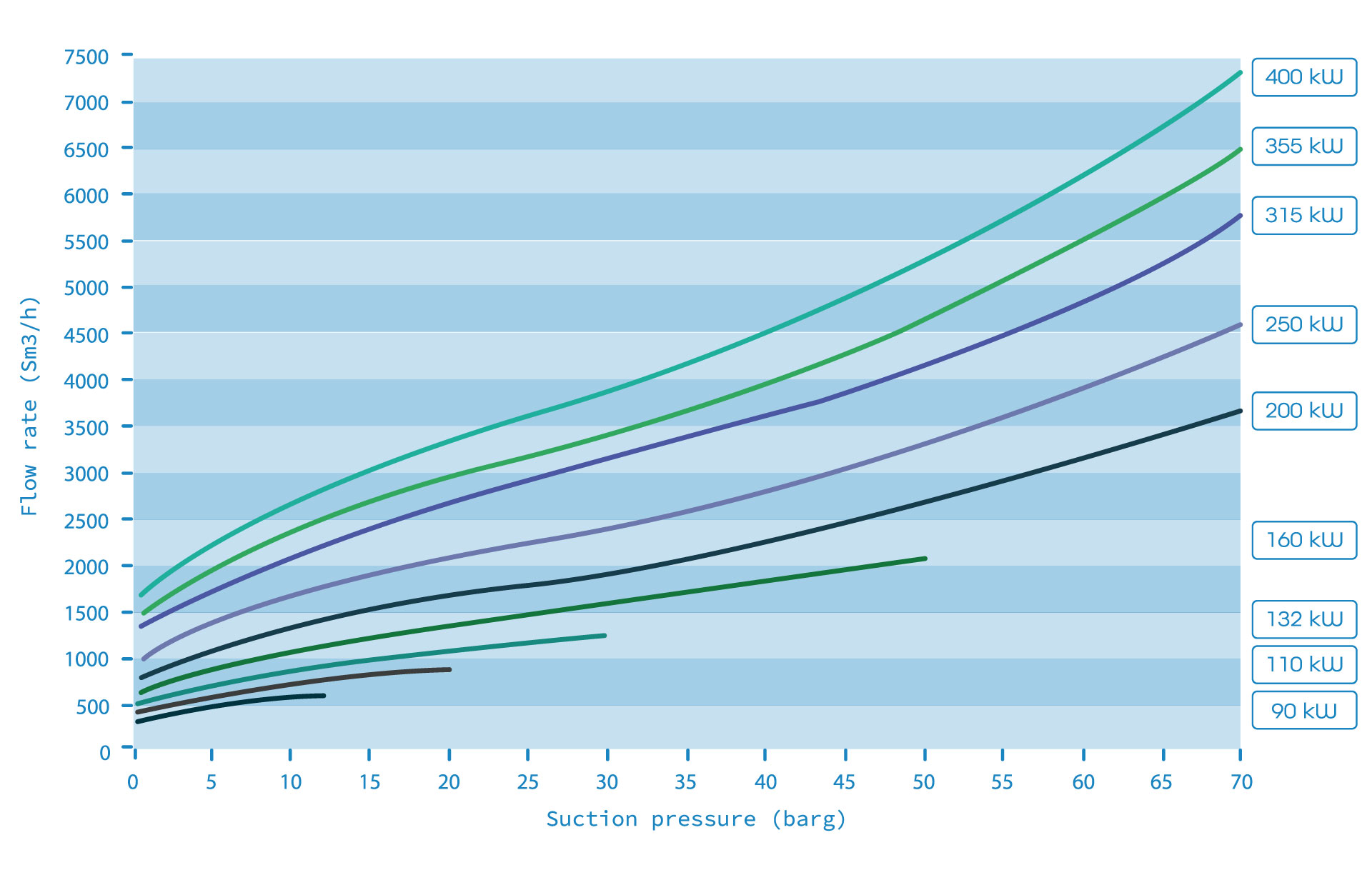 60° bucaq altında yerləşdirilmiş 2 və ya 3 silindrli mexaniki kompressorlar 90 kVt-dan 400 kVt-dək güc sərf edir. SAFE-in istehsal etdiyi ən böyük sıxılma qurğularıdır və geniş diapazonlu giriş təzyiqinin olduğu şərtlərdə işləyə bilir.